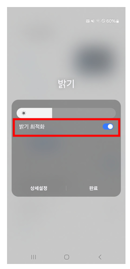 3단계: ‘밝기 최적화’ 토글 버튼 OFF